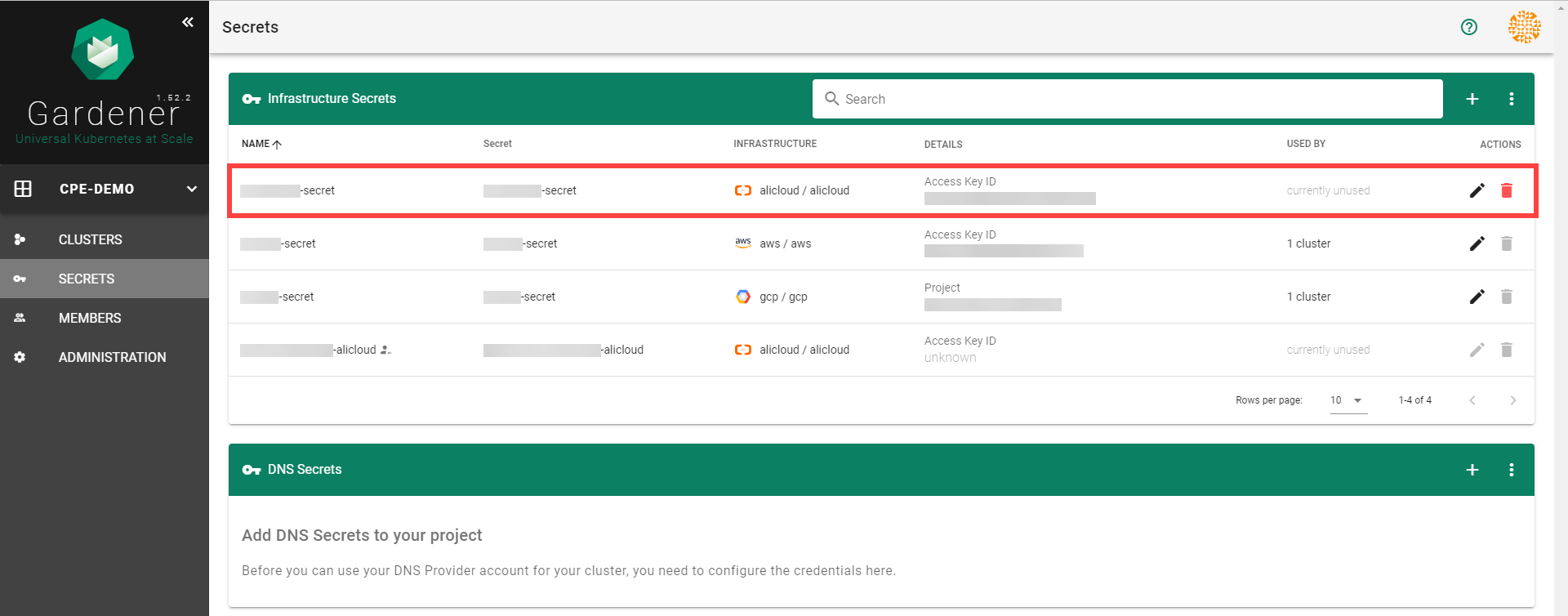 After completing these steps, you should see your newly created secret in the Infrastructure Secrets section.