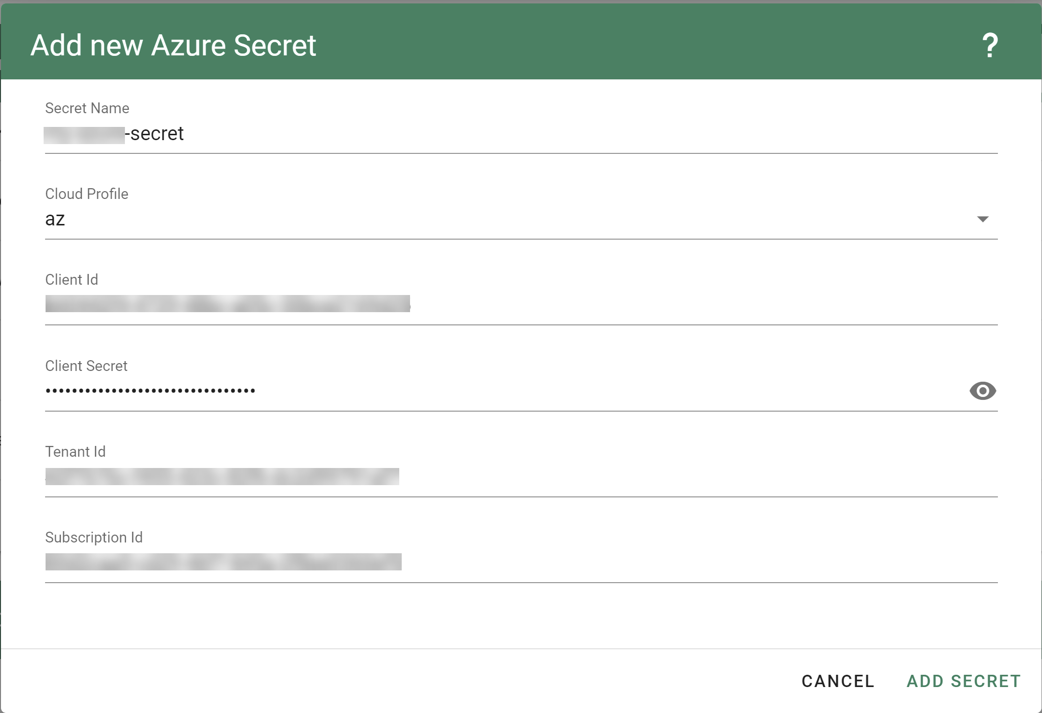 2. Copy and paste the TenantID, SubscriptionID and the Service Principal credentials (ClientID and ClientSecret).