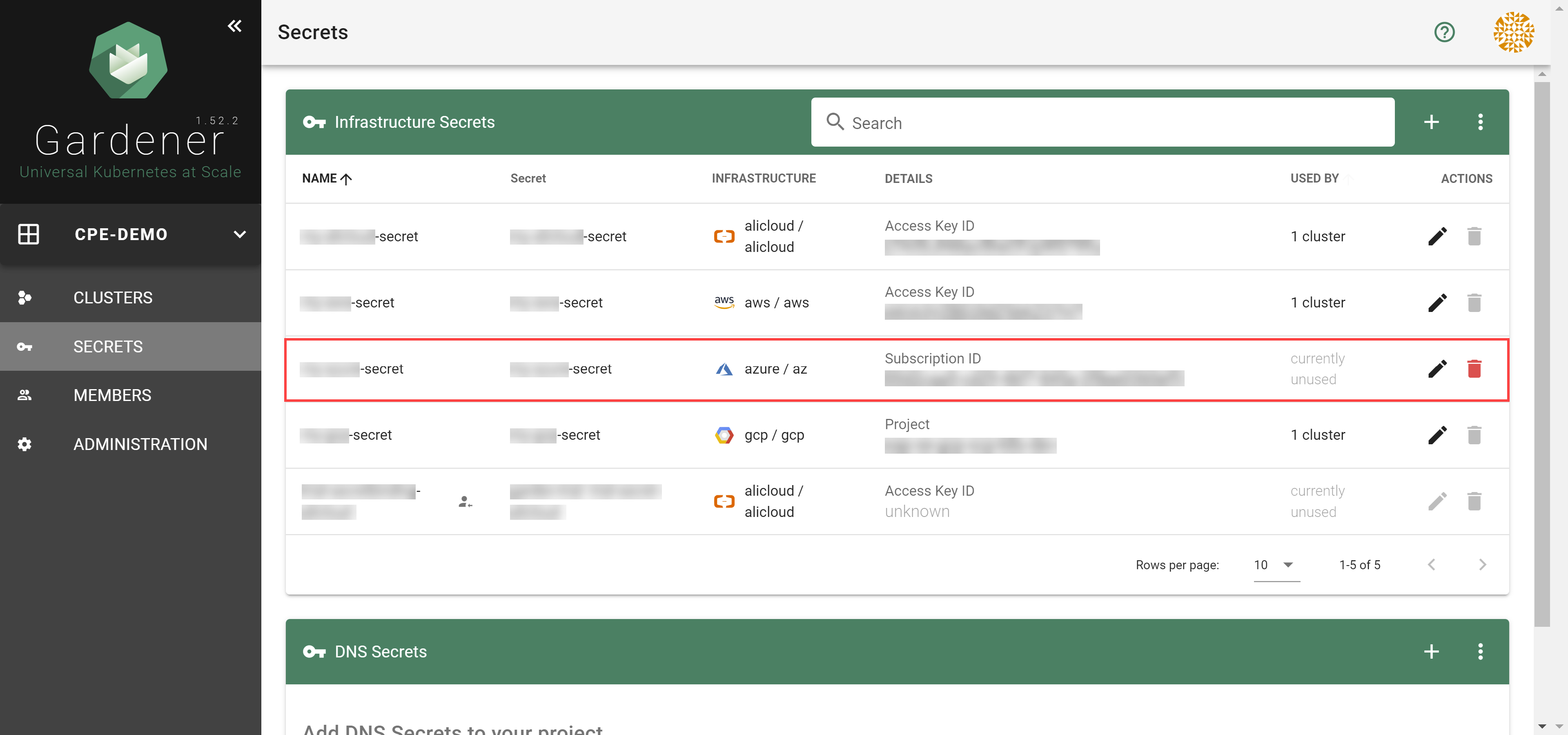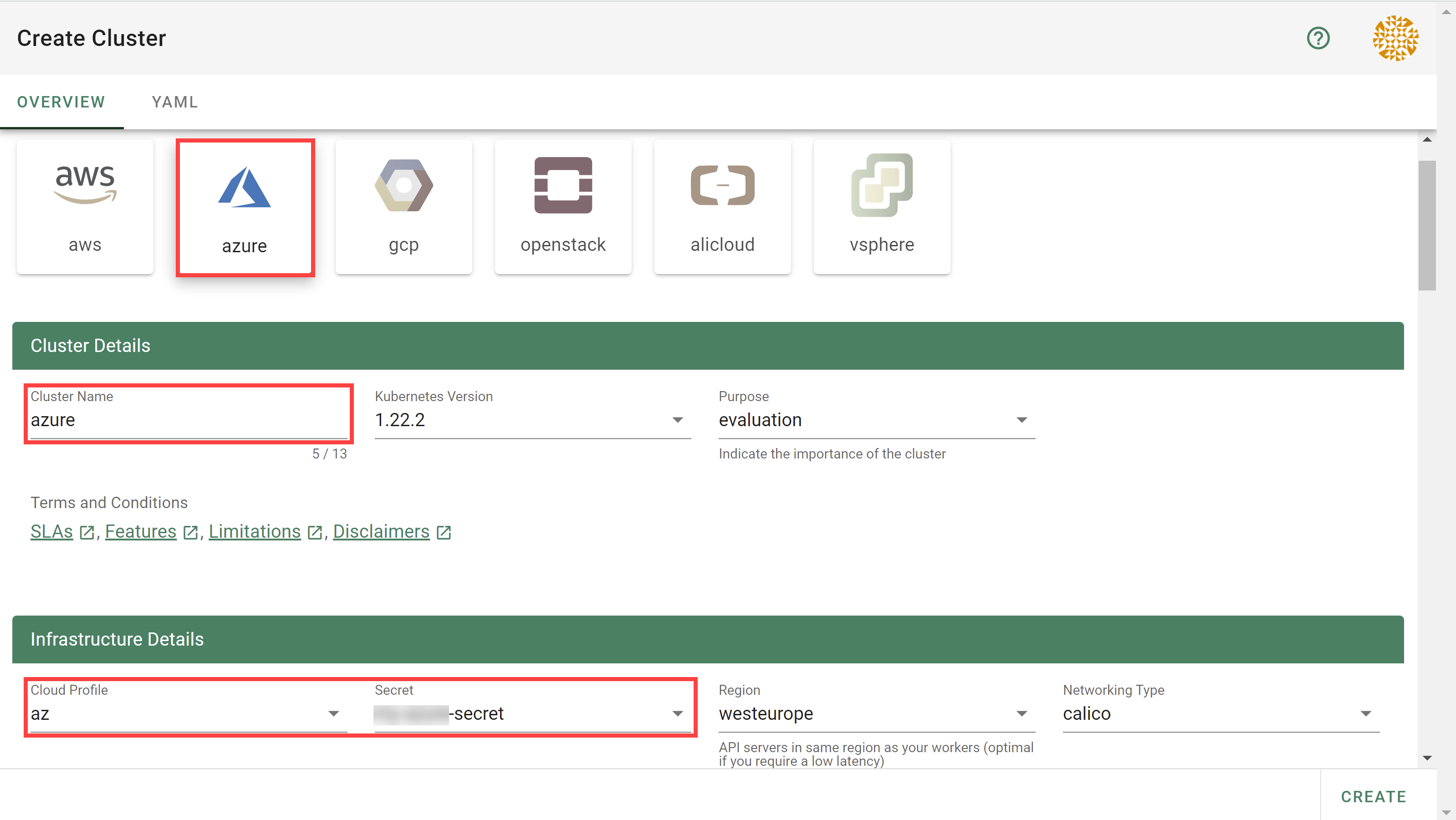 3. Choose the secret you created before in the Infrastructure Details tab.