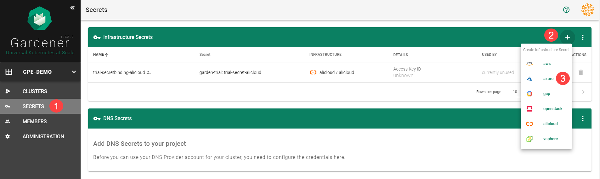 Before you can provision and access a Kubernetes cluster on Azure, you need to add the Azure service principal, AD tenant and subscription credentials in Gardener. Gardener needs the credentials to provision and operate the Azure infrastructure for your Kubernetes cluster.