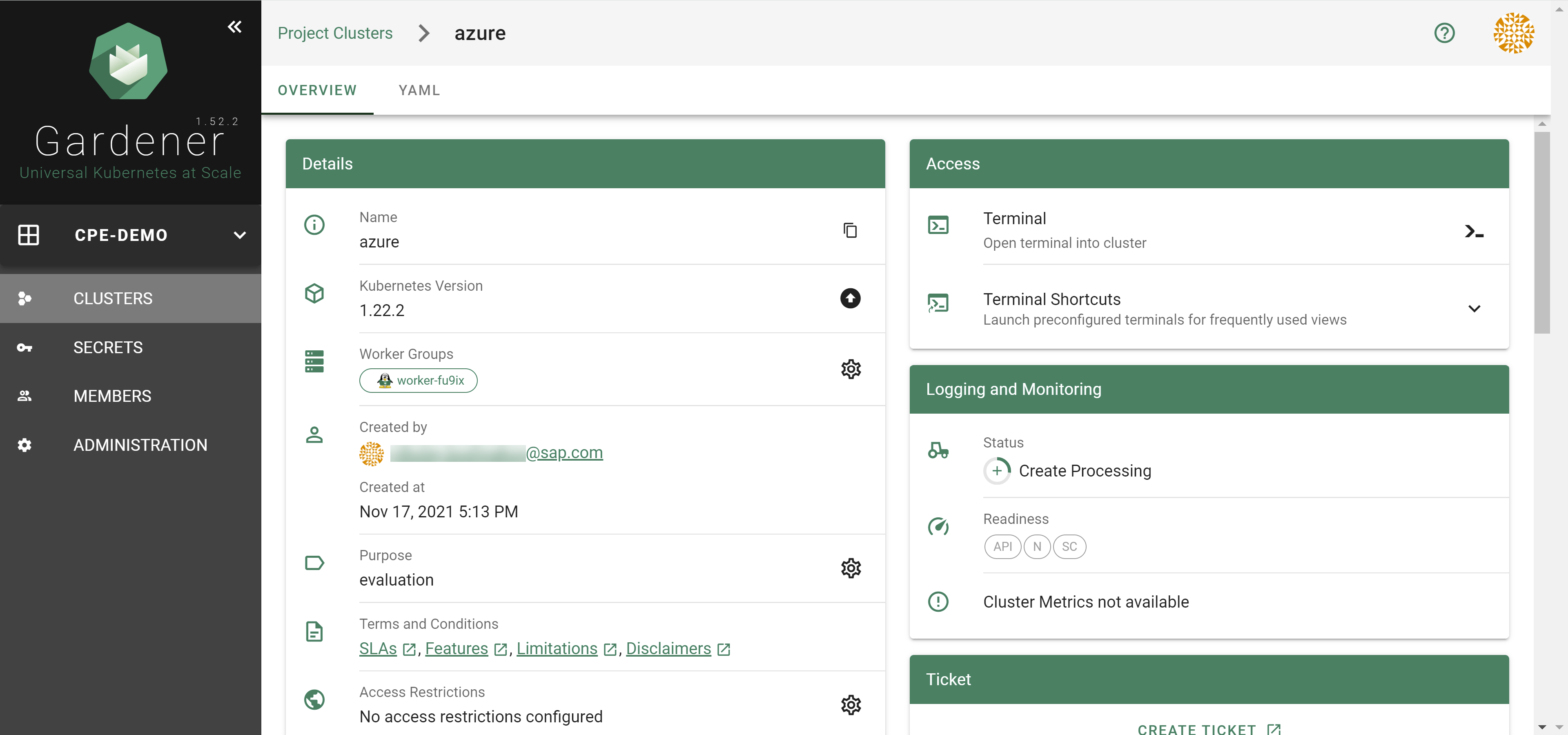 Create a Kubernetes Cluster on Azure with Gardener ​