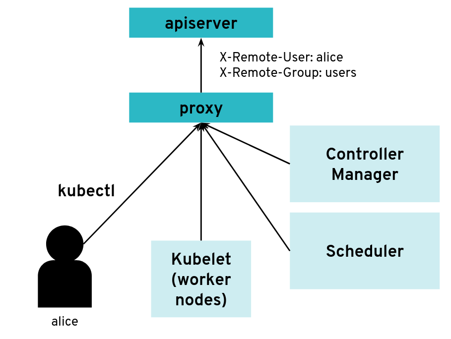 However, it is possible to configure the API server differently for use with an intermediate authenticating proxy. The proxy will authenticate the client with its own custom method and then issue HTTP requests to the API server with additional HTTP headers specifying the user name and group name. The API server should only accept HTTP requests with HTTP headers from a legitimate proxy. To allow the API server to check incoming requests, you need pass on a list of certificate authorities (CAs) to it. Requests coming from a proxy are only accepted if they use a client certificate that is signed by one of the CAs of that list.